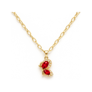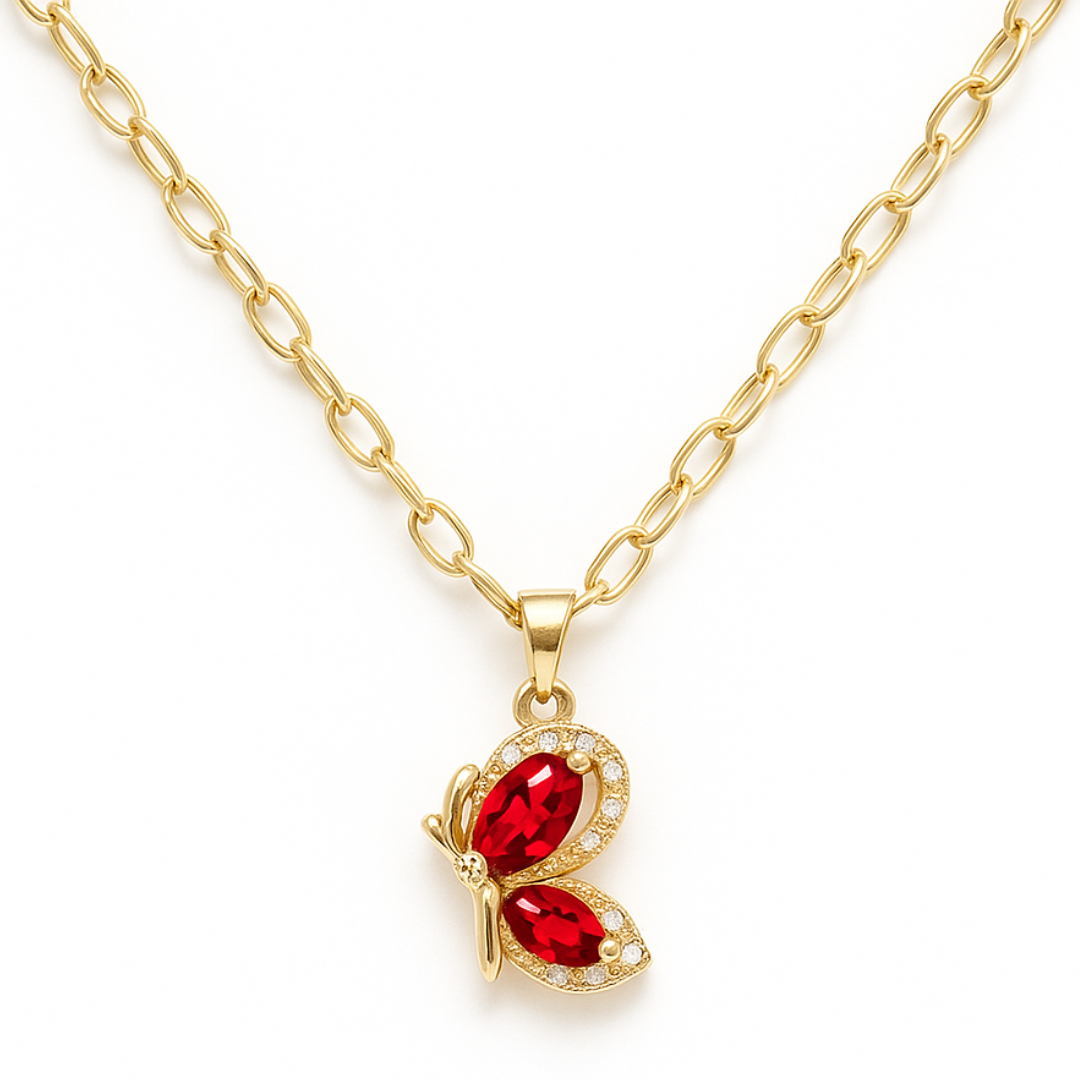 Ruby Butterfly Pendant Necklace – Gold Finish with Crystal Accents